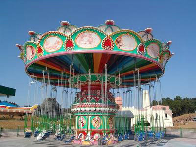 產品介紹:游客乘坐在垂掛的吊椅上,隨轉盤的轉動面徐徐升起,仿佛 在高空中飛舞翱翔,由于轉盤的升高,垂直柱頭角度漸漸偏轉,使游客猶如置身于波濤起伏的大海中其樂無窮,再加上豪華靚麗的外觀裝飾,令人耳目一新,在運動中使圍觀之人眼花繚亂,真想一試為快,具是游樂園的絕對亮點。