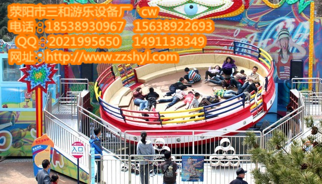 迪斯科轉盤游樂設備又名大家顫,太空迪斯科,它是一種常見的游樂設施,鄭州童趣園里就有。它是一個大圓盤,能翻滾,轉動做十多種運動。游客就在大圓盤上的沙發上圍坐成一周,伴隨富有節湊的音樂,身體隨著圓盤運動。當人坐在上面時,并不是固定的!圓盤運行時如大海波濤顛簸起伏,又如太空飛碟,變化無窮,時快時慢。迪斯科轉盤轉盤是陀螺類高速回轉大型游樂設備。游客乘坐的吊箱在強離心力作用下,高速旋轉翻飛,仿佛 被推入超越時空的天體,翻江倒海,天旋地轉,驚心動魄的刺激,風馳快感,令人回味無窮。乘客緊緊吸俯在座艙,身體不再屬于自己,把一切交給可以信任的宇宙游樂設備,你只要緊緊抓住以此成功的機會,就可以實現內心的自我。讓耳旁呼呼的風聲伴隨你每一次完成的喜悅,勝利往往屬于勇敢者。迪斯科轉盤可以45°度旋轉,玩法是你坐在座位上,到了最高點,一震一上一下,就會從座位上摔下來。