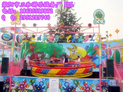 “迪斯科轉盤”游藝機是一種經典的游樂設備, 設備運行中突然升起和降落,婉如大海波濤,顛簸起伏,又如太空飛碟,變化無窮,時快時慢,同時伴隨著強烈、震撼的迪斯高樂曲,使乘客感到自己婉如一個跳動的音符。“迪斯科轉盤”以新穎刺激給乘客帶來無窮的刺激和歡樂。這個項目在國內、外都很流行,一個大圓盤,能翻滾、轉動,做十多種運動。三四十個游客就在大圓盤上的沙發上圍坐成一周,伴隨富有節奏感的音樂,身體隨著圓盤運動。