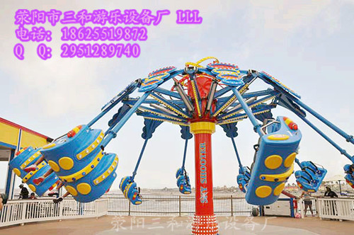 “空中射擊”是外觀類似于傳統(tǒng)飛椅游樂設(shè)備,但又不同于傳統(tǒng)飛椅。該設(shè)備除了擁有飛椅的旋轉(zhuǎn)功能之外,還可以通過氣缸起到座艙升降的作用。其極富動感的外觀,配備led燈,在夜幕下更加耀眼奪目,小朋友和成人乘坐上都能體驗(yàn)到飛翔的感覺,收獲無比的快樂。不僅能在空中旋轉(zhuǎn),而且可以按按鈕達(dá)到射擊的效果 。