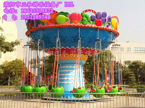果飛椅”是我們公司新型研發設計生產的一款新型游樂設備,此設備也可以叫水果旋風,本和設備原理和搖頭飛椅一樣,不過水果飛椅的造型換成了人們喜愛的西瓜、蘋果等造型,這樣更增加了設備的趣味性。