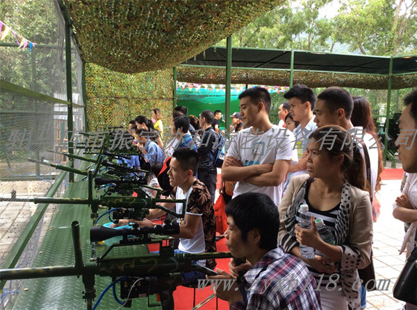 一、 該型炮長(zhǎng)約1.84米,寬約1米,高約1.1米,重約60公斤,口徑25毫米,射程10-30米。可搭配使用電子水炮目標(biāo)(擊中目標(biāo)后會(huì)有起十多米高的水柱)或電子計(jì)數(shù)目標(biāo)(語(yǔ)音提示擊中目標(biāo))等。