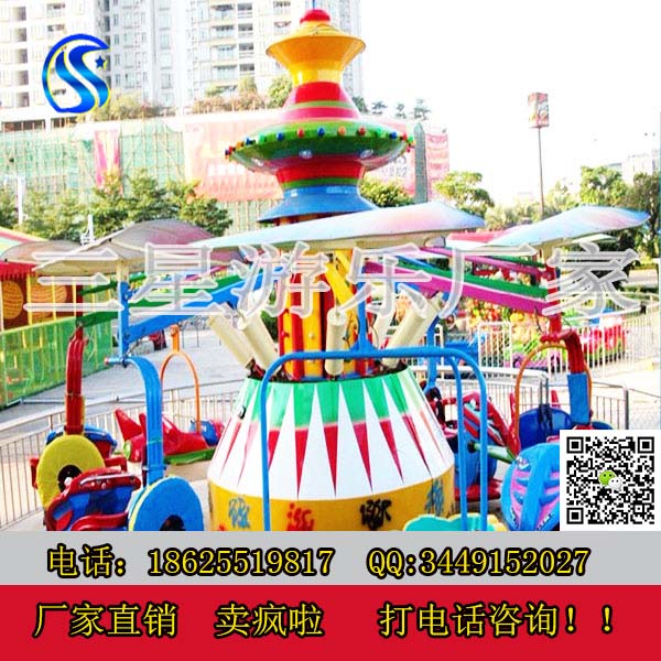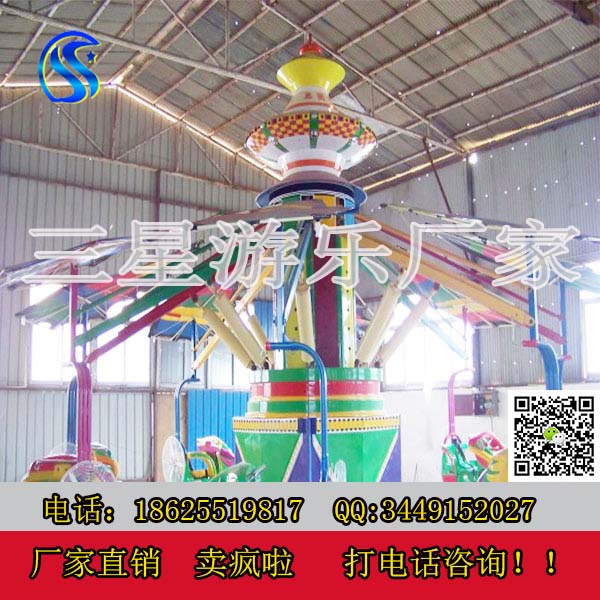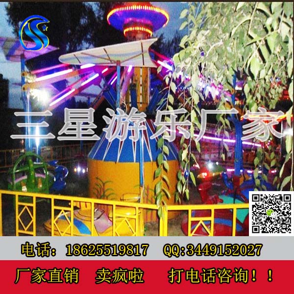 鄭州三星兒童游樂設備登月飛車單靠顏值就秒殺一切。兒童新款游樂設備登月飛車運行時可人工控制,時而冉冉升空,時而飄然下降,猶如游玩悠閑自得的仙境,在彩燈閃爍的夜幕下游玩更濃,使游客樂而忘返。家長可以陪伴兒童一起游玩,三星游樂設備廠家直銷,為您提供五星級的服務,二星級的價格。