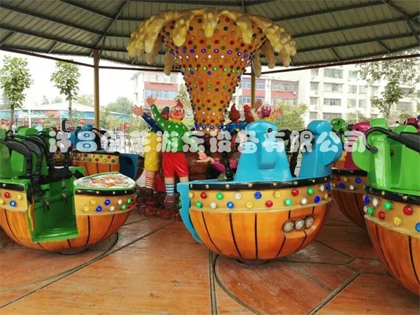 魔幻陀螺除了陀螺座艙外,中間內(nèi)景還有一朵巨大的牽牛花,讓這款設(shè)備平添了幾分美麗與嬌羞。