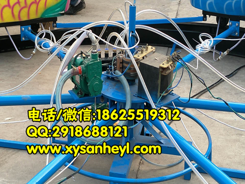 想必大家在小時候都看過小鯉魚歷險記這個動畫片吧,內容就是小鯉魚經過了重重的險境最后終于越過了龍門的故事,這款游樂設備款式新穎,是一款繞水平軸平行旋轉的兒童娛樂設施,屬于免檢游樂設備。中心柱上面的鯉魚有噴水裝置,設備啟動后大鯉魚噴水,座艙里面的小朋友可用座艙上配備的水槍或激光槍對中心柱上的動物進行射擊,被擊中的小動物會有叫聲或噴水動作,非常的有趣好玩。
