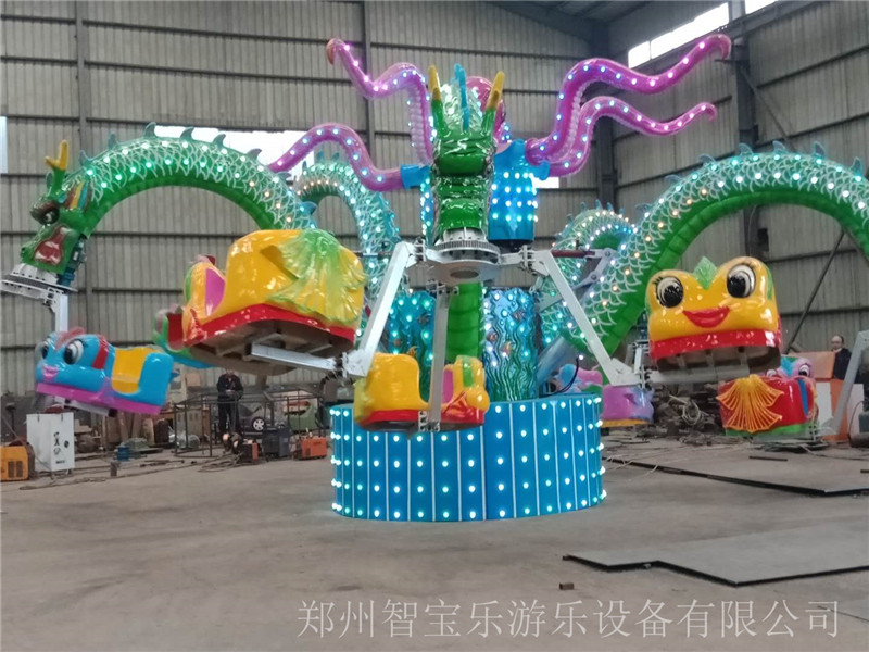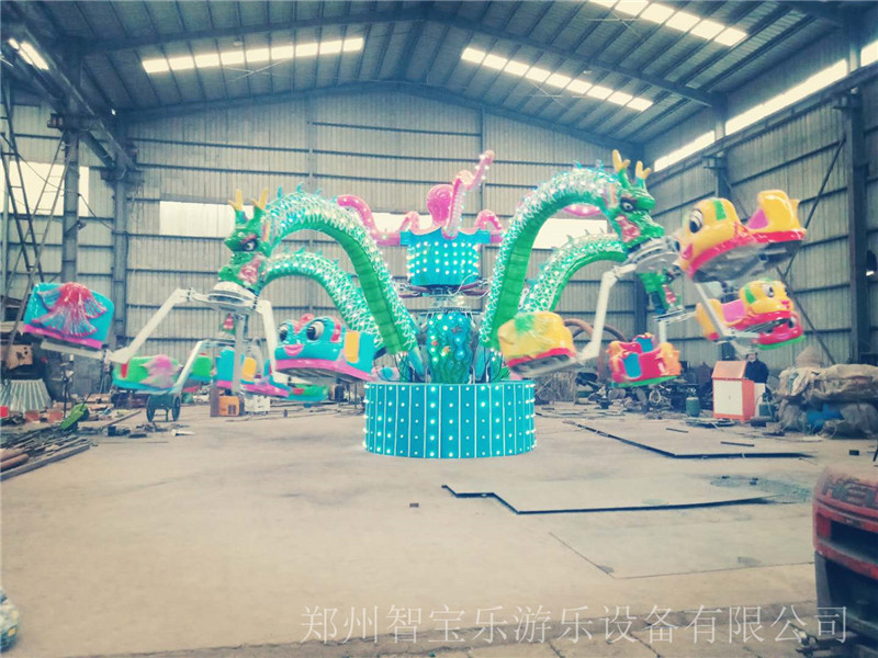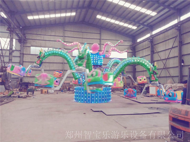大章魚游樂設備,屬于旋轉升降類游樂設備,定位為家庭親子項目;主題設計以大章魚的卡通造型為參考,新奇、夸張,吸引游客。我公司生產的大章魚,亮點眾多,無論燈光效果、主題搭配都經過精心考量,迎合大眾審美,其中最具亮點的地方是設備中心的“大章魚”觸角,會隨著設備的開動上下舞動,富有樂趣。旋轉大章魚是一種旋轉類游藝機,貌似章魚,形似蛟龍,高低起伏,隨時轉動,每個座椅可坐雙人,坐上后如魚得水、歡浪歡騰,又似蛟龍在空中飛翔,轉動速度可快可慢,可以隨時調整,是一款老少皆宜的新型游藝機,設計新穎、結構獨特、造型美觀。新穎的燈飾,動聽的音樂使人們在游玩中既能體驗眩暈中的快樂,又能體驗旋轉升降的驚險,給人們以輕松刺激的感覺。