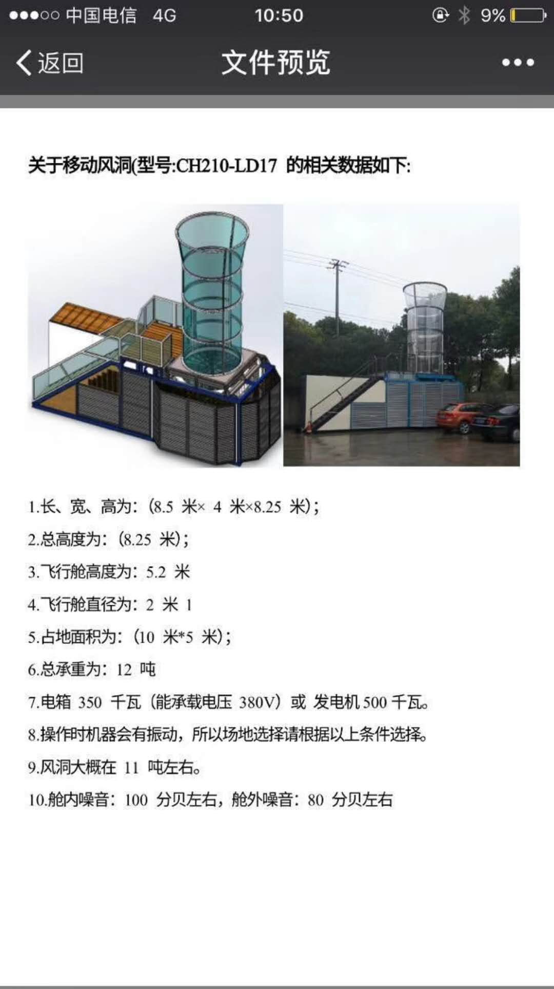 高端娛樂垂直風洞 室內型垂直風洞是利用空氣動力相對學原理而研制的一套模擬自由落體、空中飛行的設備,利用高速氣流將游客在特定的空間里吹浮起來,可以使人在空中通過不同姿勢與重心的變化做出各種動作達到與真實飛翔同樣的效果,體驗從前只有在萬米高空才能感受到的空中飛行、自由落體之快感。 高端娛樂風洞長度15米,寬5米,高10.5米,飛行倉高度5.6米,設備整重18噸, 超級大風洞,超高配置,核心設備純進口(電機、變頻器和plc觸摸控臺均是 西門子的),絕不虛夸(支持到工廠實地查驗設備型號)!飛行艙分為6節, 均為不銹鋼構件,風機隱藏在兩端,安 全無憂,豪華版風洞橫空出世!兩臺租 售均可,有意向的均可來電咨詢