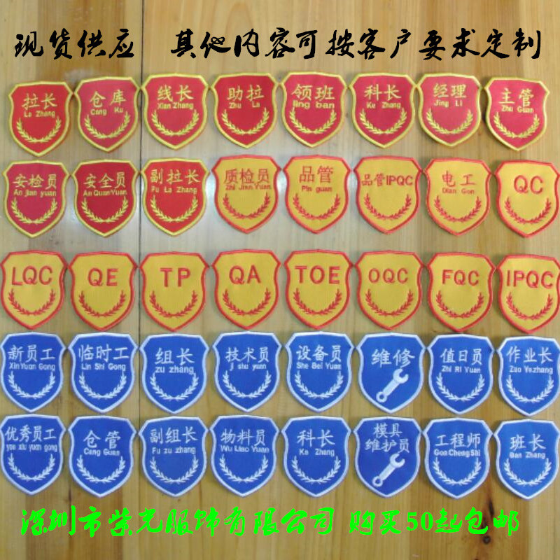深圳紫光服裝廠-本廠有刺繡各種深圳龍崗工廠員工袖章,qc臂章,管理臂章,文字內容,標志均可按客戶要求刺繡,數量一個起訂,不論數量多少,本廠均可為你供應,不管哪種臂章,袖章,本廠均可刺繡制作,還可印花臂章,彩圖印制袖章,文字印制臂章,深圳龍崗地區及周邊地區本廠還可以送貨上門。歡迎有需要的顧客朋友來電訂購!