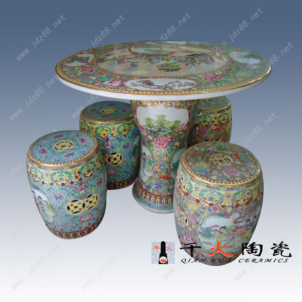 景德鎮陶瓷桌凳為純手工繪制,料色清爽活潑,層次分明,為各類青花瓷中的上品,畫面以山水樓閣,書法字畫,花鳥走獸等為題材,繪畫工藝活靈活現,如身臨其境,同時我們工廠可以單獨繪制客戶喜愛的畫面,或者贈送題字等,具有非常的紀念意義,整款陶瓷桌凳彰顯大氣,有氣勢,如此精致的陶瓷桌凳適合園區布景、居家生活,集藝術審美和實用于一身,細節中無不體現著景德鎮唐龍陶瓷廠精湛的制瓷技藝和無與倫比的藝術成就!景德鎮唐龍陶瓷高溫燒制的陶瓷桌凳為景德鎮特有,所以它結實美觀,經久耐用,不怕日曬雨淋,不會產生類似破損或者變型等問題,陶瓷桌凳的畫面是手工繪畫的,藝術感非常強。!本公司完全采用景德鎮傳統手工陶瓷制作工藝制作。圓桌面、方桌面,青花、粉彩、墨彩等畫面齊全,款式多樣。