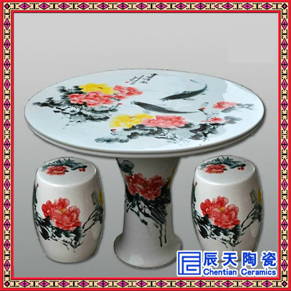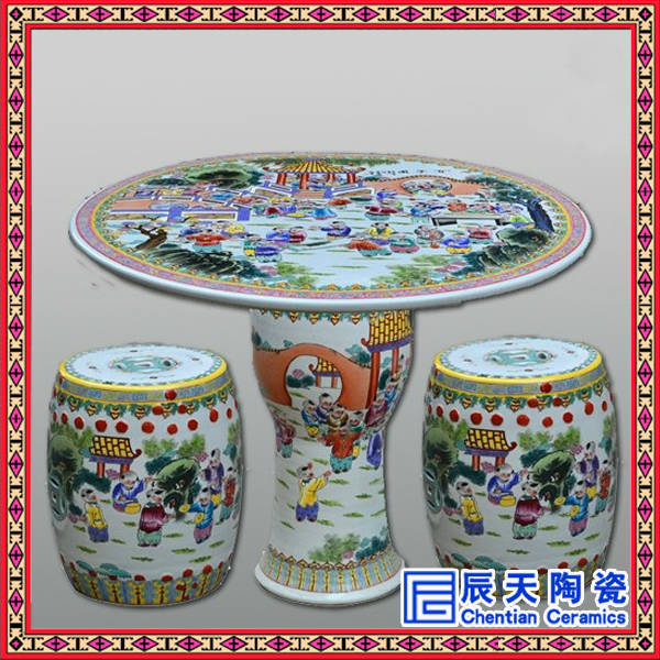 景德鎮陶瓷桌凳為純手工繪制,料色清爽活潑,層次分明,為各類青花瓷中的上品,畫面以山水樓閣,書法字畫,花鳥走獸等為題材,繪畫工藝活靈活現,如身臨其境,同時我們工廠可以單獨繪制客戶喜愛的畫面,或者贈送題字等,具有非常的紀念意義,整款陶瓷桌凳彰顯大氣,有氣勢,如此精致的陶瓷桌凳適合園區布景、居家生活,集藝術審美和實用于一身,細節中無不體現著景德鎮辰天陶瓷廠精湛的制瓷技藝和無與倫比的藝術成就!景德鎮辰天陶瓷高溫燒制的陶瓷桌凳為景德鎮特有,所以它結實美觀,經久耐用,不怕日曬雨淋,不會產生類似破損或者變型等問題,陶瓷桌凳的畫面是手工繪畫的,藝術感非常強。!景德鎮辰天陶瓷桌凳具有不怕風吹雨打,歷久如新,易清潔等特點。是家居休閑使用、園林景點擺設、饋贈親友的時尚用品。手繪的陶瓷桌凳,造型獨特,價值更是毋庸置疑,是您居家使用以及藝術珍藏的首選。辰天陶瓷桌凳是您休閑的理想之選,在閑散的午后和新友喝喝下午茶,亦或獨自來杯濃濃的咖啡,都是追求現休生活的一種最愜意的享受。在炎夏之夜,一家人在陽臺、庭院中,樹蔭下,圍坐在陶瓷桌旁,喝茶賞月,納涼消暑,盡享天倫之樂......