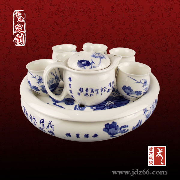 陶瓷茶具套裝,青花瓷茶具帶茶盤,景德鎮(zhèn)陶瓷茶具定做廠家
