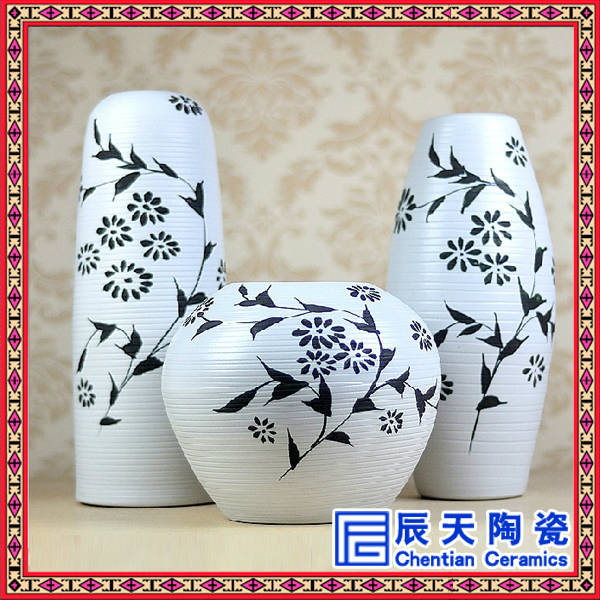 景德鎮瓷器大量系藝術陶瓷、生活用瓷和陳設用瓷,以白瓷為著稱,素 有“白如玉,明如鏡,薄如紙,聲 如磐”之稱,品種齊全,曾達三干多種品名。瓷質優良,造型輕巧,裝飾多樣。在裝飾方面有青花、釉里 紅、古彩、粉 彩、斗彩、新彩、釉下五彩、青花玲瓏等,其中尤以青花、粉 彩產品為大宗,顏色釉為名 產。釉色品種很多,有青、藍、紅、黃、黑等類。僅紅釉系統,即有鈞紅、郎窯紅、霽紅和玫瑰紫等, 均用"還原焰"燒成,產品馳名世界, 是稱譽世界的古代漢族陶瓷藝術杰出代表之一。 本廠產品都為出口歐美,日韓,流行款式,質量符合歐州標準,油漆,顏料,材料都為環保產品,客戶盡可放心。融匯了東西方的古典浪漫和現代派流行元素 ,憑借設計師獨特的設計理念、領先的設計水準、精湛的制作工序、雄厚的生產能力、實惠的價格成為國內家居業的潮流之秀。樣板房、高檔住宅、豪宅、別墅、五星酒店、頂級會所整體配飾。家居送禮,商務送禮。 花瓶是一種最常見的家居陳設用品,其質地有玻璃、陶瓷、紫砂、、木、竹等。它們或古樸典雅、精光 內蘊,或飄逸流暢、神韻天成。這其中以瓷器類的花瓶點綴居室最能營造出古雅吉祥的文化氛圍。用花瓶來裝點居室應根據房間和家具的形狀、大小來選擇。如廳室較狹窄,就不宜選體積過大的品種, 以免產生擁擠壓抑的感覺,在布置時宜采用“點狀裝飾法”,即在適當的地方擺置精致小巧的花瓶,起到點 綴、強化的裝飾效果。作為工藝品,放在一處作為裝飾,那也足夠吸引客人的目光,盡顯主人的獨特魅力了 ;本套擺件適合時尚家居擺設,能為熱愛生活的您的家居氛圍增添一份精致與時尚。寶貝擺在家里,藝術、美觀又個性時尚!亦是饋贈佳品,送給親朋好友體現您的高貴品味。