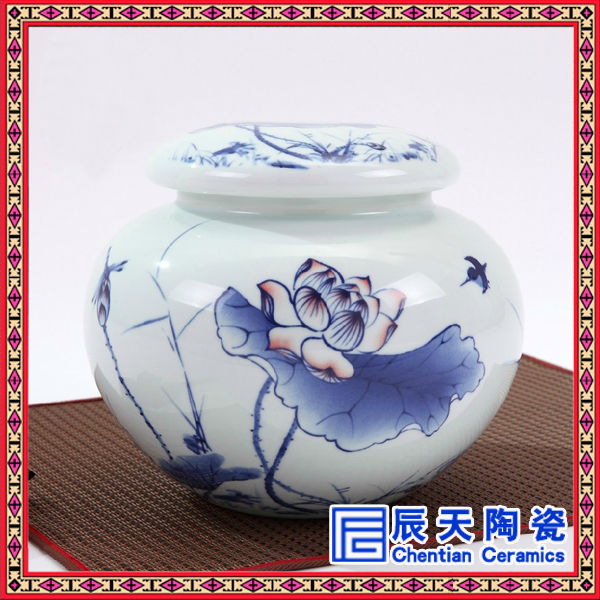 景德鎮(zhèn)廠家專業(yè)訂做陶瓷茶葉罐,青花瓷茶葉罐,陶瓷藥罐,陶瓷米罐,陶瓷棗罐,陶瓷食品罐,陶瓷將軍罐等系列陶瓷罐子完全采用景德鎮(zhèn)高質(zhì)高嶺土,經(jīng)1300多攝氏度高溫?zé)贫,是完全瓷化的陶瓷制品?