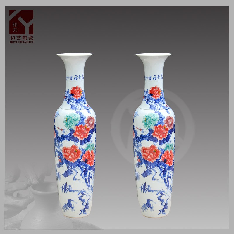 日等。全手工繪制,高白泥手工拉胚,高白釉上底色。禮品陶瓷大花瓶要經過淘泥、摞泥、拉坯、修坯、繪畫、上釉、燒窯、成瓷等近七道工藝才能完成。