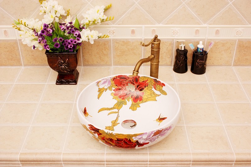 本產品更具收藏價值,每款的制作工序都是由手工制作完成,所以每一款陶瓷盆也都會有些細微的差別,這是在手工制作中無法避免的,不過也正是如此,每款盆的珍貴之處也就凸顯出來了,絕對的獨一無二,完全不同與普通模具批量生產的藝術臺盆,另手繪潔具與普通印花潔具相比,在制造工藝上,手繪潔具是在產品加工時,由陶藝高級技師采用釉料將花紋圖案親手一筆筆雕刻或繪畫在泥質毛坯上,然后再噴涂上釉料高溫燒制而成,而普通貼花盆的釉料含有化學成分,一些化學原料貼附上去并再次燒制而成,所以比起這類似釉上燒制的陶瓷貼花盆,其更耐磨不褪色,無論經過多少年,還是和新的一樣.從視覺上來看,手繪潔具表面光亮,圖案的光澤度也非常好,這更是件藝術品,更難得的是獨一無二,用手輕撫也能感覺到它溫潤的質感