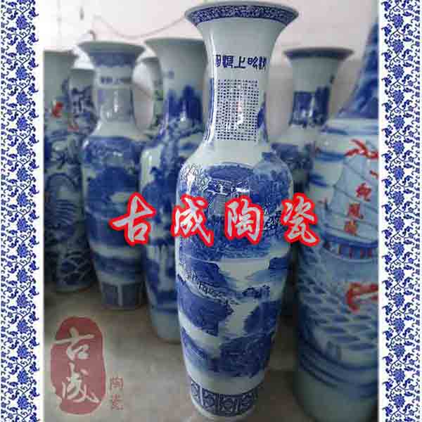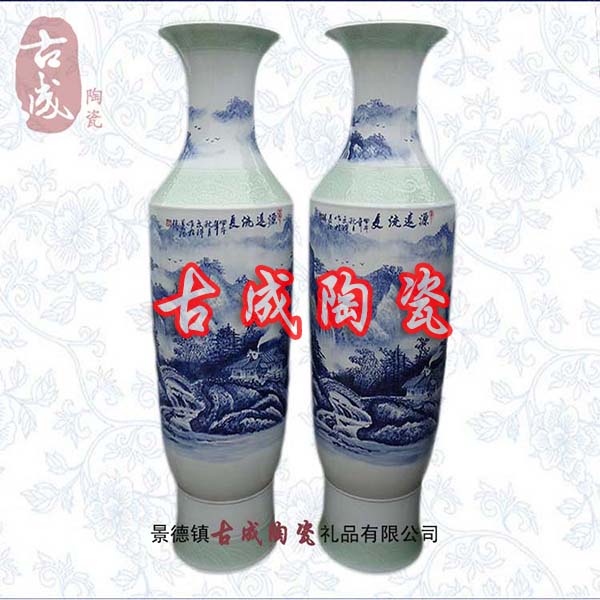 陶瓷大花瓶用于大廳、門廳、客廳等擺設,主要適合于開業禮品,大樓建筑落成、工程竣工開業、奠基典禮、酒店賓館陳設、企事業單位喬遷、周年紀念 、學校校慶、搬遷新居等。制作工藝為景德鎮純手工繪制,高白泥手工拉胚,高白釉上底色,整個生產工序要經過淘泥、摞泥、拉坯、修坯、繪畫、上釉、燒窯、成瓷等近七十道工藝之多,并可根據您的特殊需要在陶瓷大花瓶身上可燒制logo、公司名稱、人名、贈言,紀念用語,年月日等。