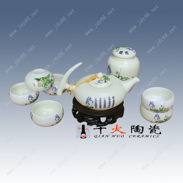 景德鎮(zhèn)唐龍?zhí)沾捎邢薰臼且患页闪⒂诰暗骆?zhèn)多年的陶瓷定做生產(chǎn)廠家,是一家正宗的景德鎮(zhèn)陶瓷廠家,公司的產(chǎn)品皆是用優(yōu)質(zhì)高嶺土高溫?zé)贫桑に囉匈N花,精品手繪,大師手繪等可以滿足您不同需求,我公司生產(chǎn)的景德鎮(zhèn)茶具套裝款式繁多、做工精美、風(fēng)格獨(dú)特。可以根據(jù)您的需要添加各種圖片、公司logo圖形和文字等,讓您的產(chǎn)品更加具有特色。
