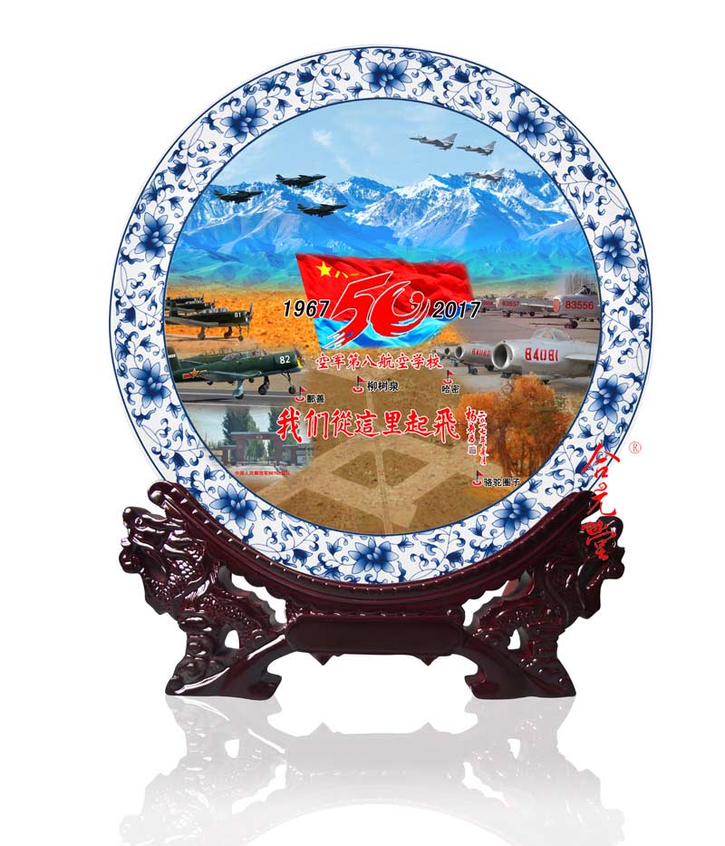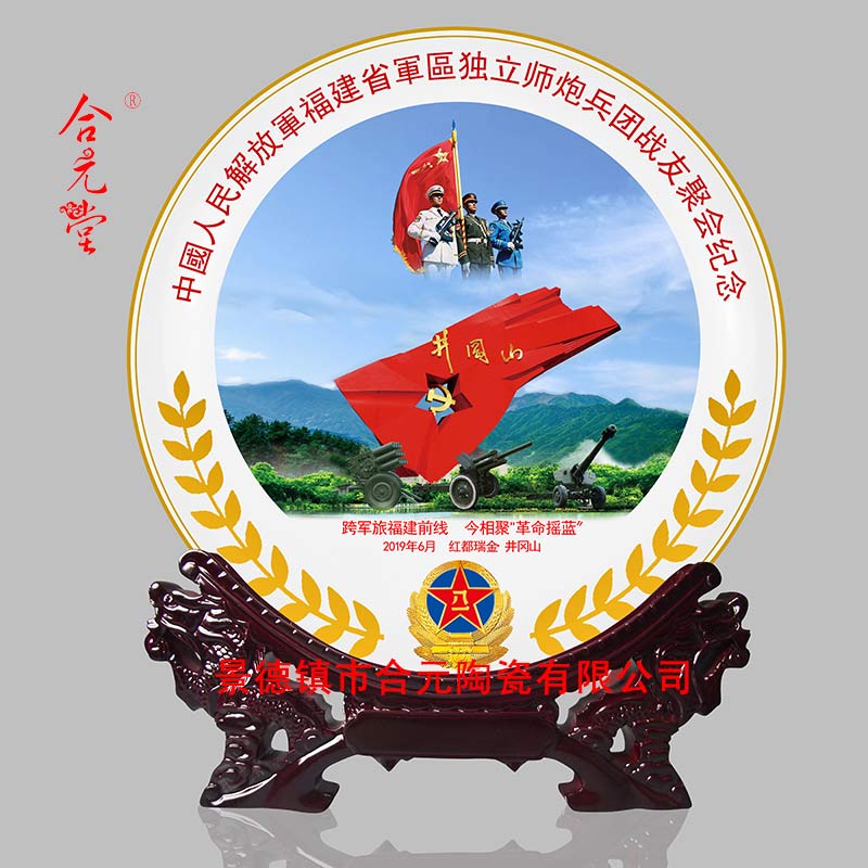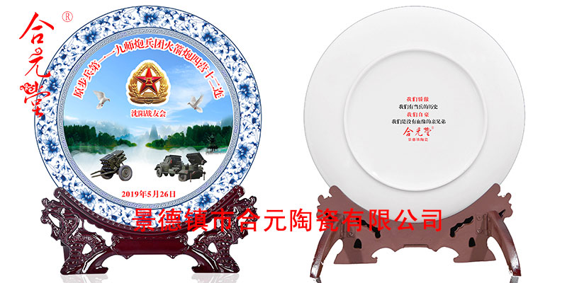 景德鎮市合元陶瓷有限公司引領時代的潮流,為廣大朋友們提供格式各樣的陶瓷紀念盤,戰友聚會禮品紀念盤,同學聚會紀念品擺盤、同學畢業照紀念品瓷盤、商務活動禮品賞盤、周年慶典禮品陶瓷紀念盤等等。為戰友們專業設計定做的戰友聚會禮品紀念盤,是融合了戰友間的情感和友誼,作為紀念品保存收藏價值高。戰友聚會禮品紀念盤是陶瓷制品,經過高達1300度以上高溫燒制,畫面不褪色不掉色。陶瓷紀念盤的畫面款式多樣,圖案風格各異,用青花山水、粉 彩花鳥、飛禽走獸為背景,每款紀念盤都意義非凡。