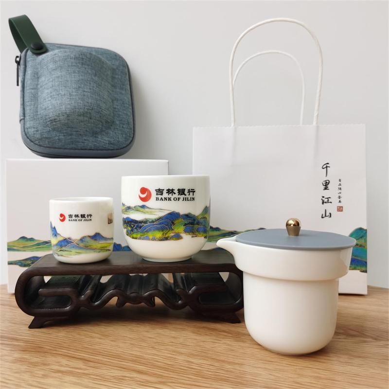 這款千里江山圖茶器禮品套裝作為銀行禮品定做陶瓷茶杯可以是:銀行宣傳禮品、銀行會員生日禮品、銀行活動禮品、銀行周年慶禮品、銀行員工退休禮品、銀行辦公日用品、銀行走訪客戶禮品。(廠家出貨,量大價優。支持現貨加定制)。更多銀行禮品定做歡迎來電咨詢。合元陶瓷(李斌)24小時歡迎各位的垂詢。