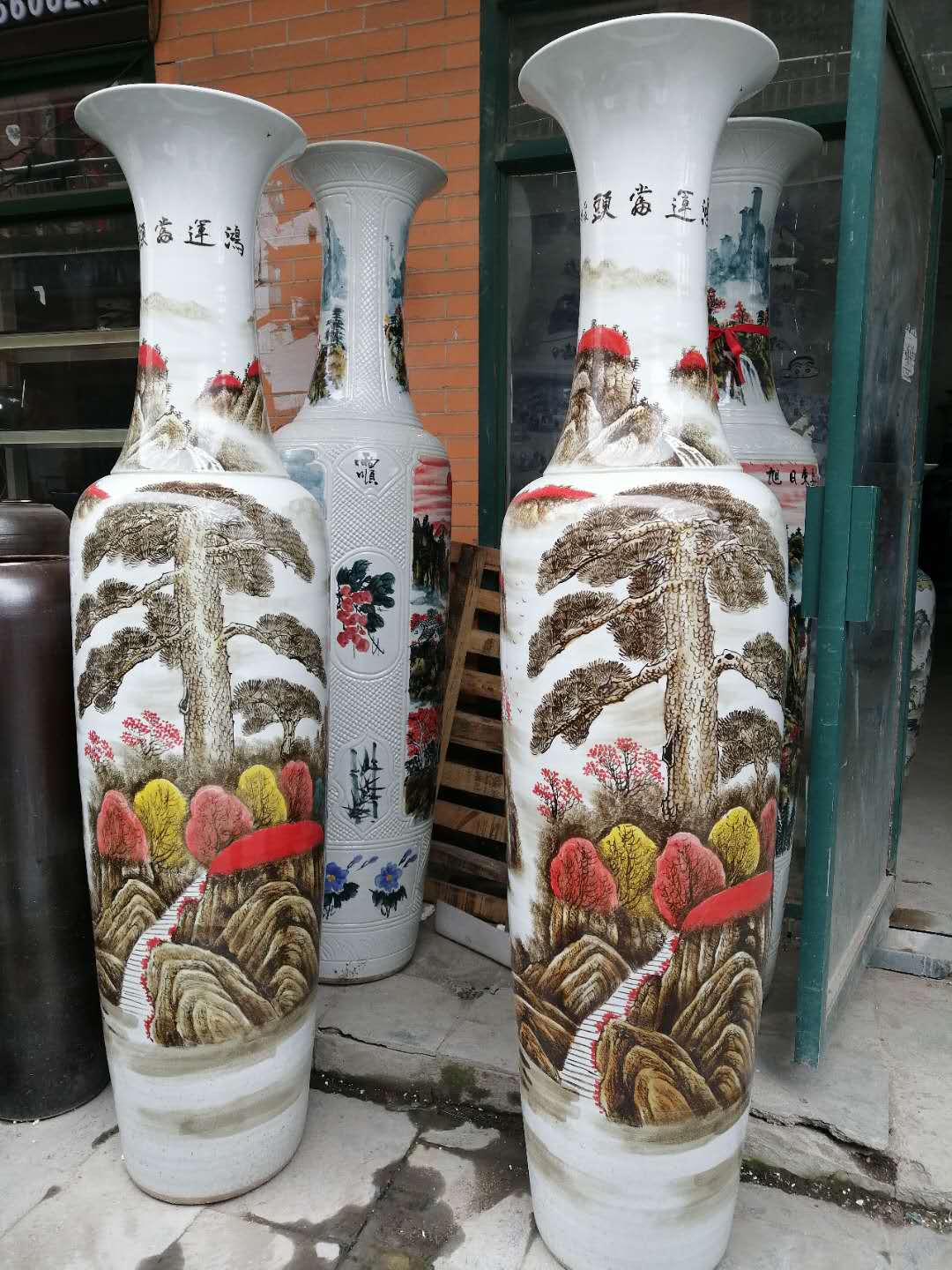 現有花瓶圖案:清明上河圖、鴻運當頭,漓江春色,旭日東升,迎客松,錦繡山河,錦繡前程,富貴牡丹,源遠流長,富貴榮華等等!如果用作賀禮或是贈送禮品可在大花瓶上添加文字。