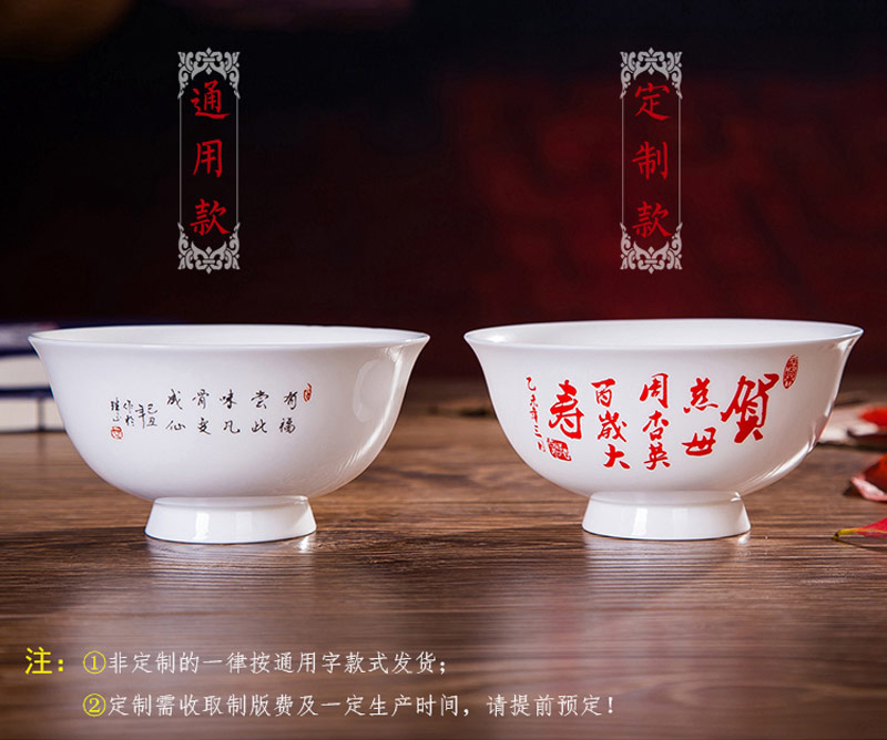 景德鎮壽宴定制壽碗廠家,老人大壽定制骨瓷壽碗加字