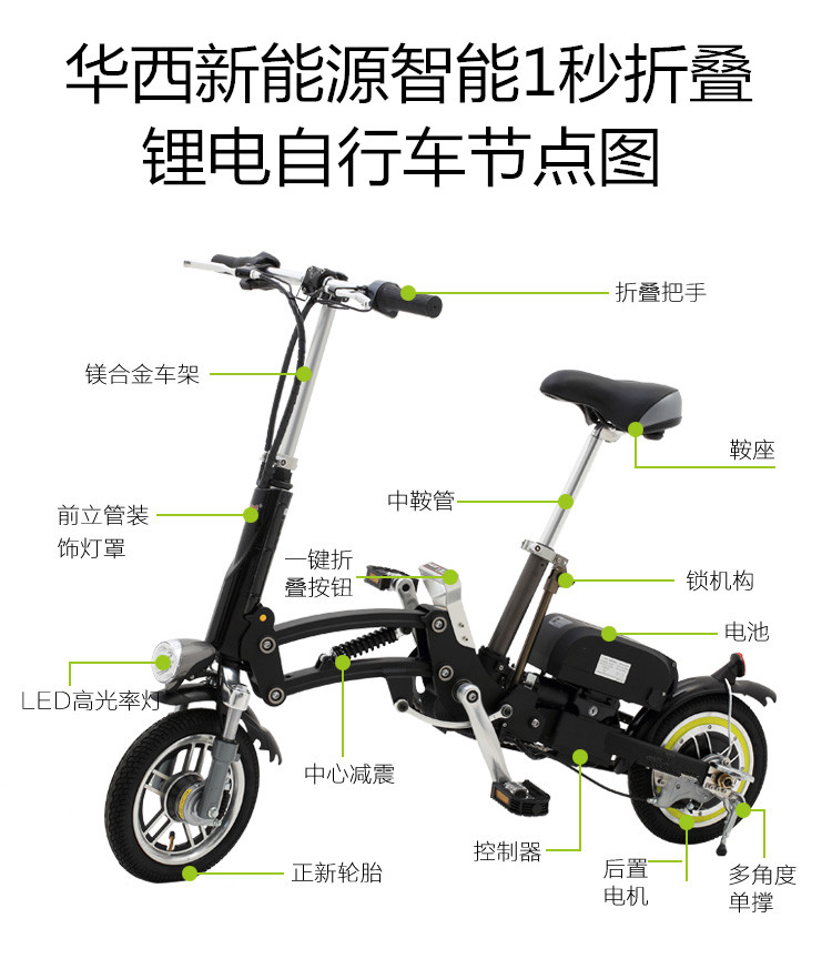 鎂合金車架、正新輪胎、前后羅拉剎車、手動一秒折疊、專利鋰電池休眠功能、1∶1助力系統(tǒng)、直筒液壓前減中心減震、鎂合金前叉、電動35—40km、1∶1腳踩助力55—70km、36v9ah鋰電池、毛重/凈重 27/23kg |