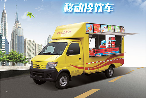 保定長安 售貨車經過在專業的汽車上裝置冰 激凌機、飲料機、冰 箱等食品機械,在車上能夠現場制作冰 激凌、奶昔、奶茶、飲料、冰 粥、果泡、咖 啡 、果汁、圣代等各種冷熱品。還可做鐵板燒、烤肉串等上十幾種美食商品。