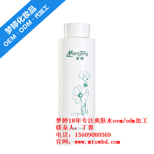 廣州夢婷生物科技有限公司不僅是一家現代化的廣州化妝品加工廠,也是一家專業從事爽膚水oem代加工業務的廣州爽膚水oem廠家,位于廣州白云區人和鎮, 引進法國先進的爽膚水加工技術外,為保證產品的品質,產品80%以上的原材料均由日本、法國等大型化工公司提供,嚴格按照國際品質管理體系iso9001執行,生產車間完全按gmp標準設計,凈化指標達10萬級以上。夢婷在爽膚水oem貼牌加工生產上均嚴格遵循美國fda產品標準研發制造,根據不同渠道的不同需求,細分化、精準化,各類產品及系列,一應俱全;尤其在美白、保濕、抗衰等功效性產品的開發上,功效卓絕,客戶滿意度高達99.9%!歡迎廣大化妝品加工oem/odm客戶垂詢。廣州夢婷生物科技有限公司是一家值得信賴的爽膚水生產加工廠家,歡迎夢婷咨詢爽膚水oem生產加工業務,我們將為您提供優質的服務!