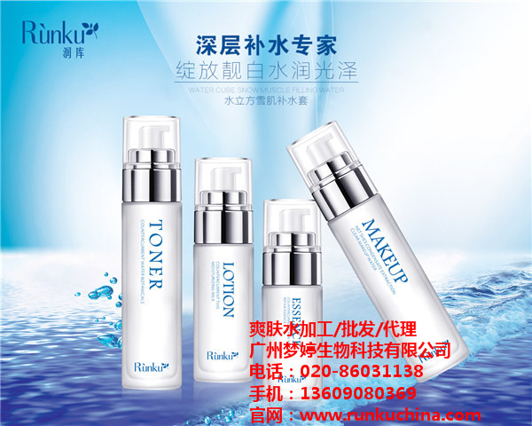 廣州夢婷生物科技有限公司是一家大型化妝品生產企業,成立于2000年?偛课挥谌珖瘖y品生產基地——廣州白云區人和鎮,工廠擁有白云區一萬三千多平米gmpc成熟運作生產基地,工廠專業研發中高端面護、微整形系列產品,長期供應于國內多家知明企業業線品牌的代工。 擁有成熟有效的化妝品配方達三千多種,工廠90%原料均為進口原料,因產品原料安 全、有效、賣點突出,從而吸引國內外多家知明高端客戶前來代工。 公司廠區環境優美,生產車間完全按照化妝品衛生規范條件建設,公司擁有10萬級gmpc國際質量體系認證。全力為美容化妝品行業提供專業的odm/oem一條龍服務,為眾多新生美容化妝品品牌提供完善的配套服務。在業界已成為化妝品行業運營管理的典范,成為眾多品牌成功的幕后推手。潤庫水立方雪肌補水套裝直銷批發代理銷售