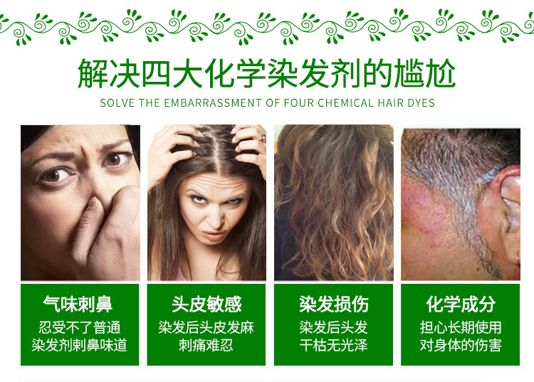 功效:可以歸避傳統(tǒng)的染發(fā)產(chǎn)品給人們帶來的危害,避免頭發(fā)脆弱、干枯,甚至可能引起 的皮膚過敏、皮炎等情況;消除了染發(fā)引起的各種健康疑慮,實(shí)現(xiàn)了護(hù)發(fā)、染發(fā)、養(yǎng)發(fā)三效合一的完美素 求,完全顛覆了染發(fā)劑 一定是化學(xué)配方的歷史。產(chǎn)品不含任何化學(xué)添加劑 ,老少皆宜,具有天然染發(fā)、養(yǎng)發(fā)、護(hù)發(fā)三大功效。對欲改善染燙后的發(fā)質(zhì)和發(fā)色者、想染發(fā)害怕化學(xué)染發(fā)劑 和化學(xué)染發(fā)劑 后遺證者;有白發(fā)者;脫發(fā)嚴(yán)重、有生發(fā)愿望者有特殊的功效。
