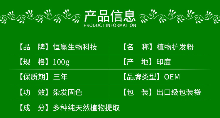 印度海娜粉 純天然植物染發(fā)印度染發(fā)粉 植物護(hù)發(fā)粉 安 全不過敏無色素 香精.天然無添加真正印度進(jìn)口,并非新疆或者巴基斯坦冒充,且不會(huì)暗地里混合紅土以及化學(xué)成分,孕婦都可以使用,對身體無任何副作用與傷害。