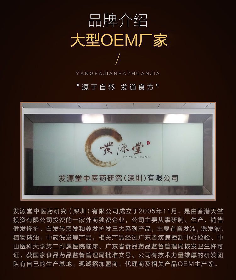 發(fā)源堂中醫(yī)藥研究(深圳)有限公司是一家外商獨(dú)資企業(yè),成立于2005年11月,公司從研發(fā)、生產(chǎn)、經(jīng)營一條龍服務(wù)模式專注于養(yǎng)發(fā)美容事業(yè)14年,專攻白發(fā)轉(zhuǎn)黑,止脫生發(fā),去屑止癢,控油固發(fā),養(yǎng)發(fā)護(hù)發(fā),美容護(hù)膚六大系列產(chǎn)品,經(jīng)過廣東省食品藥品監(jiān)督管理局核發(fā)化妝品生產(chǎn)許可證,榮獲國家衛(wèi)生部批準(zhǔn)文號并在國家藥監(jiān)局系統(tǒng)備案,客戶遍布中國,新加坡,加拿大,韓國等全球各地,以獨(dú)特的古老配方與現(xiàn)代技術(shù)的結(jié)合,采用“五合...