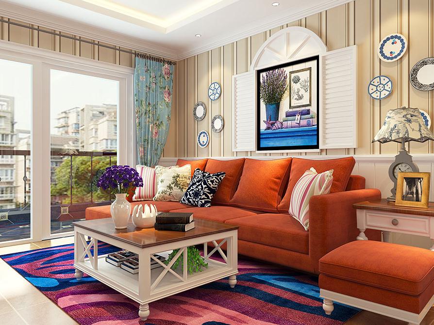 濃烈的色彩對比,溫馨的家居擺設,都給人熱烈浪漫的感覺。餐廳設計了卡座,搭配簡單的儲物柜,營造輕快溫暖的用餐氛圍。客廳橙色普拉達沙發亮眼時尚,與電視柜的優享臺面色形成呼應。電視柜精致小巧,實用性強,整個空間的設計很有家居生活感,裝飾有分寸,給人舒適浪漫的感覺。