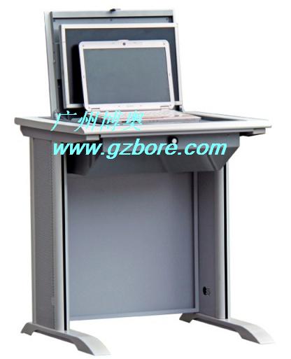 結(jié) 構(gòu):使用時只要打開鎖,液晶顯示屏便會自動翻起,鍵盤也同時自動打開。當不使用時,可用手動按下翻蓋面板。整個翻轉(zhuǎn)器與桌面齊平,產(chǎn)品具有防塵保持桌面平整,美化桌面等功能。電腦主機位置有鎖上,可防盜,