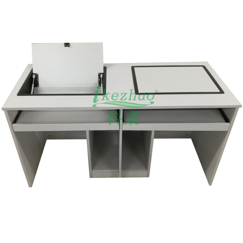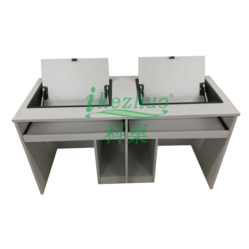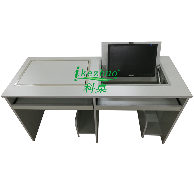 科桌翻轉電腦桌主要應用于各種大型會議室,學術報告廳,計算機教室,多媒體教室、多媒體會議室、多媒體電子教室、多媒體電教室