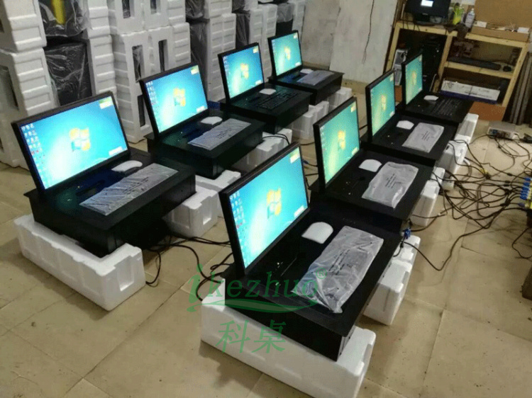 下液晶顯示器,當打開翻轉器時液晶顯示屏會自動翻轉開,鍵盤也同時會自動升起與桌面齊平,當不使用時,顯示屏可隱藏