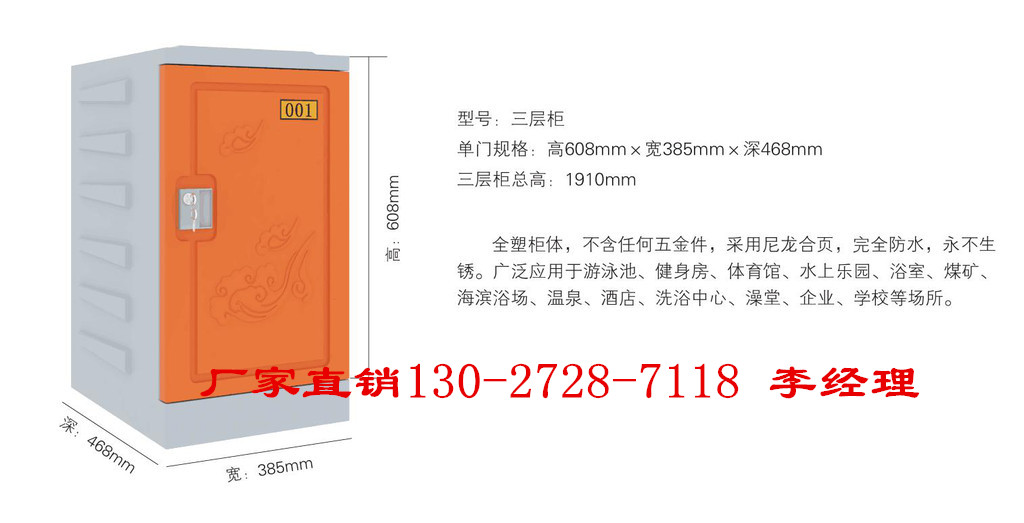 1、塑料更衣柜材質(zhì):塑料更衣柜選材于abs塑料,而abs塑料是由abs樹脂合成的,防水防潮、不生銹、耐沖擊、耐熱、耐酸 堿 、不腐蝕、不導電、不變形、環(huán)保無味。