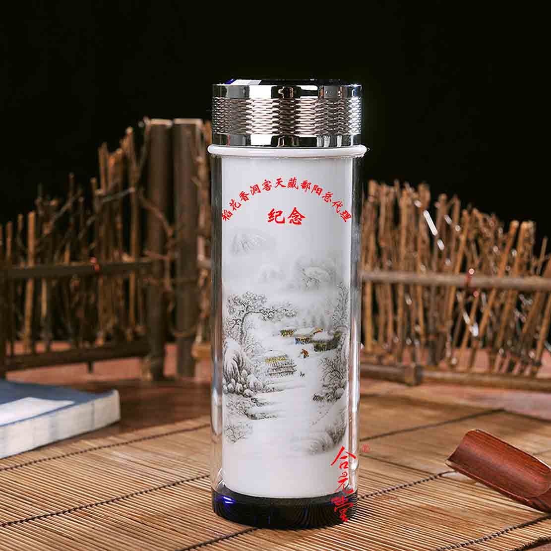 陶瓷保溫杯為雙層結構,杯身采用食品級材料制造,內膽為陶瓷,內膽烤制繪畫圖案,韌性強、抗衰、氣韻悠長,堪稱杯皿極品。杯內陶瓷在燈光照射下,瓷質通透,潔白無瑕,溫潤如玉。
