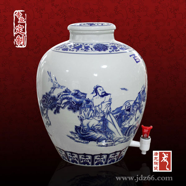 我們唐龍生產不同風格款式的青花瓷酒壇,有帶鎖扣的青花瓷酒壇,帶龍頭的青花瓷酒壇,升值青花瓷酒壇的重量、大小、花色,都可定制,10斤青花瓷酒壇、20斤青花瓷酒壇、50斤青花瓷酒壇、100斤、500斤、1000斤2000斤等等都可定做,還可在青花瓷酒壇上加字加logo等。滿足客戶對酒壇的任何需求。