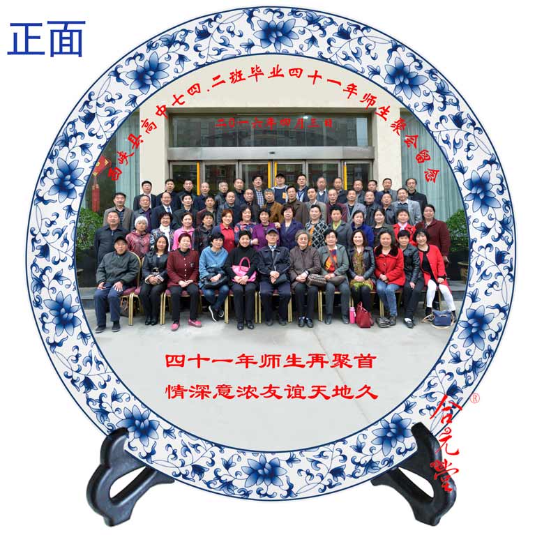定制同學聚會留念瓷盤都是高溫貼花,非一般低溫廉價制作,不易褪色。定制同學聚會留念瓷盤可以根據客戶的不同需求添加照片、圖案、文字、logo等,作為企業宣傳禮品也是不錯的選擇。