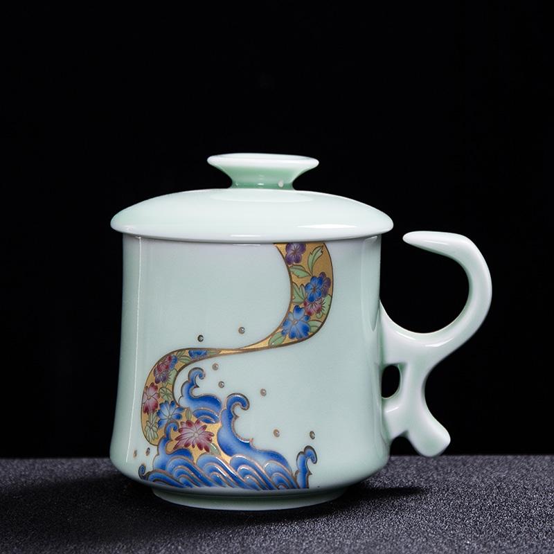 青瓷茶杯大號(hào)容量有500ml左右,大氣優(yōu)美,適合男士使用。