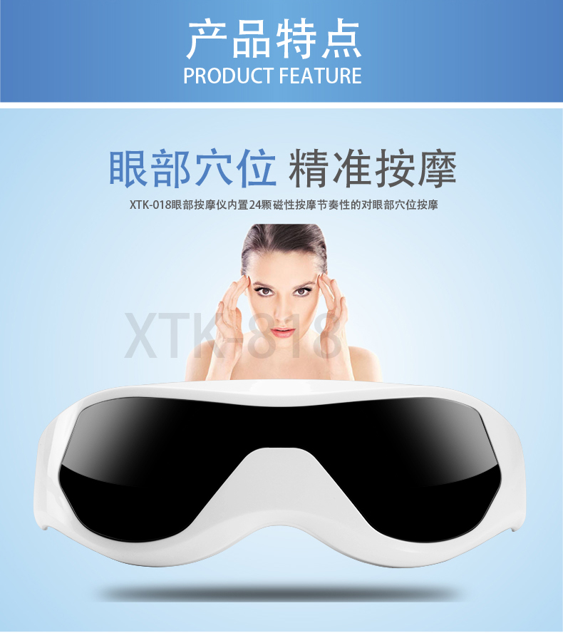 護(hù)眼專家按摩儀是國(guó)內(nèi)首創(chuàng)的大眾化普及型新奇護(hù)眼用具,它是根據(jù)中醫(yī) 經(jīng)絡(luò)學(xué)說(shuō),通過(guò)22顆釹磁指同時(shí)按摩眼部穴位,刺激和鍛煉視椎細(xì)胞和視神經(jīng),緩解睫狀肌疲勞,減輕長(zhǎng)時(shí)間用眼造成的眼睛干澀和疼痛,調(diào)和氣血,促進(jìn)新陳代謝。獨(dú)特的針_孔_狀透片可矯正焦點(diǎn),護(hù)目養(yǎng)神,加強(qiáng)眼部細(xì)胞組織自然自愈能力,在防止近視、弱視等眼睛疾病加深的同時(shí),并收到美容眼部的功效。產(chǎn)品采用眼鏡式造型,佩戴舒適,按摩力度有九種方式可以調(diào)節(jié),還有自動(dòng)定時(shí)控制,外觀精美顏色靚麗,是絕佳的眼部保健小護(hù)士,也是饋贈(zèng)好友的絕佳的禮品、贈(zèng)品、促銷品。