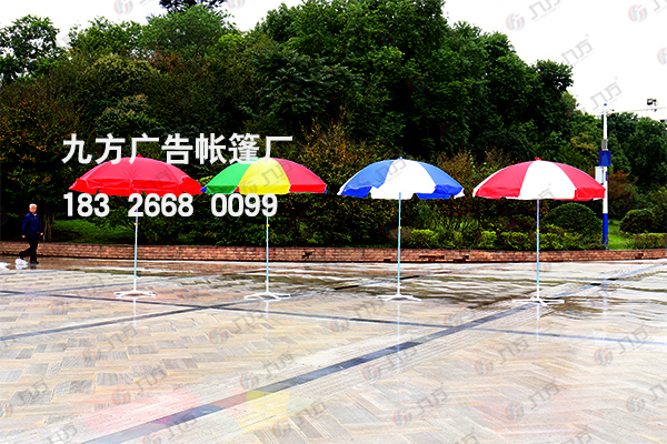 九方帳篷廠供應各類太陽傘定制、廣告 傘批發、戶外遮陽傘定制批發,傘骨采用優質材料,鋼管加粗,不易生銹防水,耐用;傘桿采用全新鋼材,環保耐用更加堅固;布料使用高密度防水、防曬頂布,防雨、遮陽效果俱佳;傘面可按客戶需求印制各類圖案且圖案清晰亮麗,精細入微!