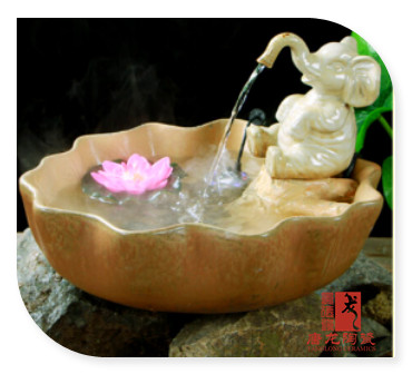 景德鎮陶瓷噴泉是經1300度以上的高溫燒制,工藝步驟繁瑣復雜,有不變形、不褪色結構精美猶如仙境,且是適合現代的無鉛、無鎘、無輻射,無害的健康環保產品,景德鎮陶瓷噴泉款式多樣,顏色齊全,一掃傳統加濕器色彩單一,暗陳無澤等缺點,是現代家居裝修必備的優質裝飾擺件。