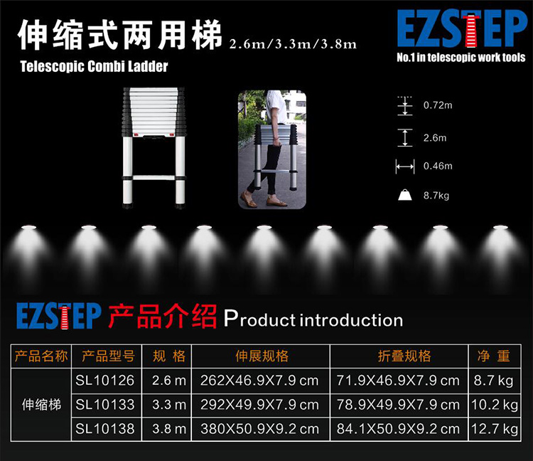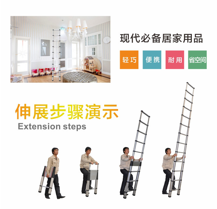 折疊后占用空間小,外出作業時攜帶方便。使用時靠著墻壁或樓臺,可伸縮不同高度,滿足用戶需求。