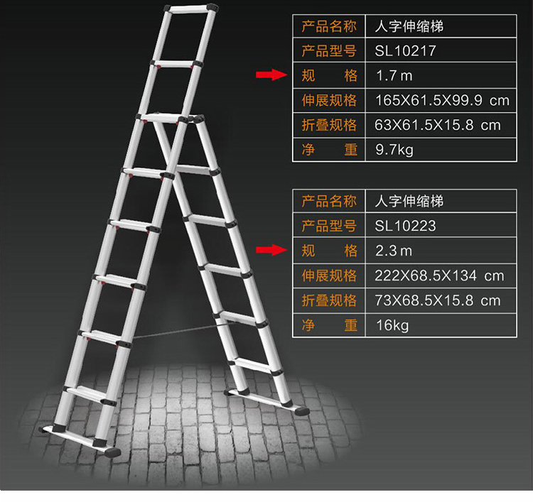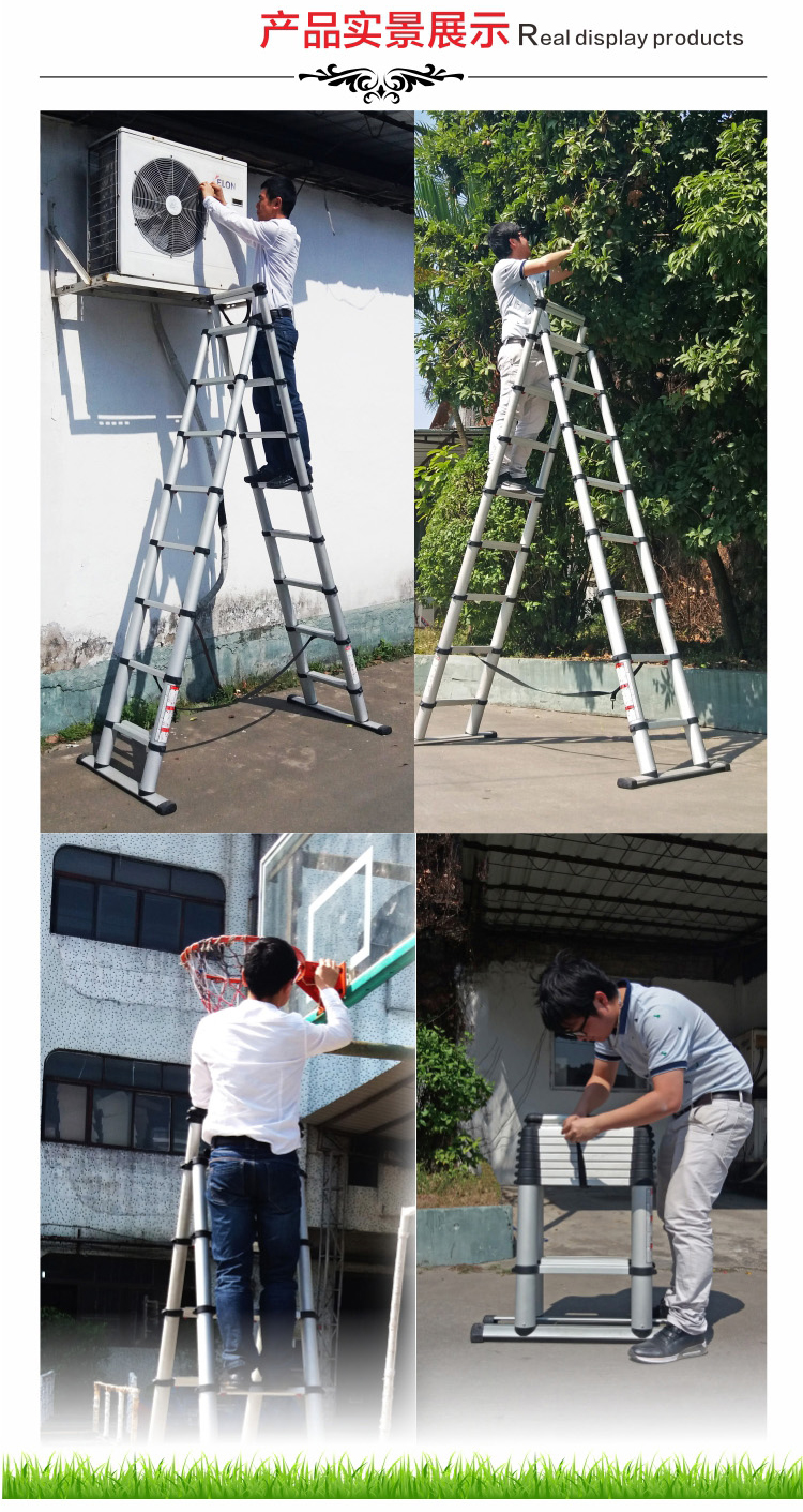 折疊后占用空間小,外出作業(yè)時(shí)攜帶方便。使用時(shí)靠著墻壁或樓臺(tái),可伸縮不同高度,滿足用戶需求。
