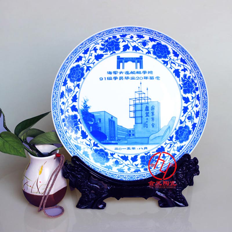 學校陶瓷紀念盤常規是圓形,搭配支架,或禮盒錦盒包裝,可以作為裝飾品,同時具有收藏意義。學校陶瓷紀念盤可以根據學校的要求定制畫面,將學校的建筑,校徽,校訓,校長等燒制在學校陶瓷紀念盤。