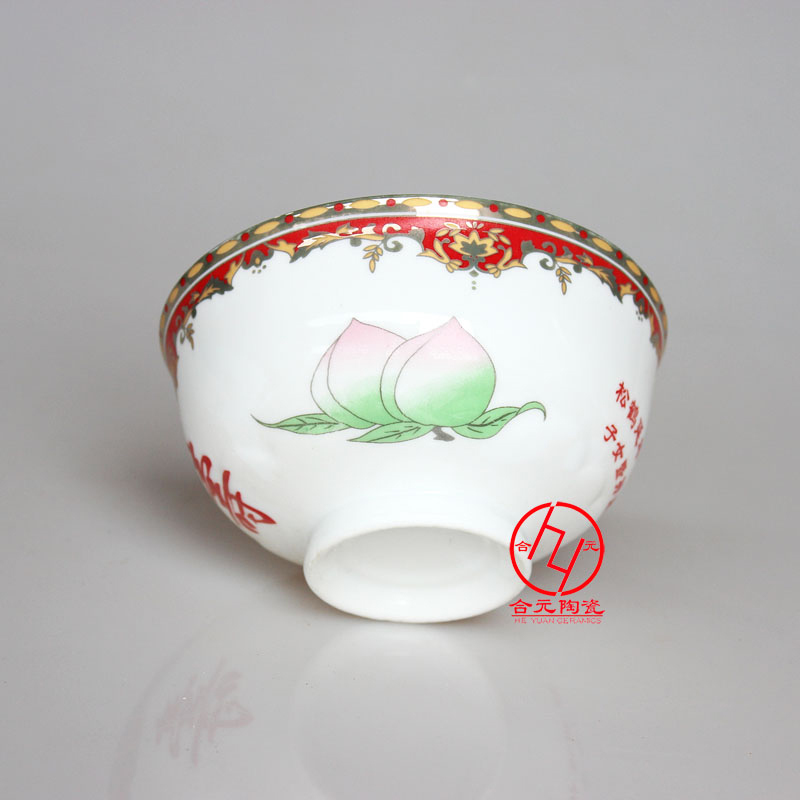 景德鎮合元陶瓷專業承接陶瓷壽碗定做,廠家生產金邊壽字碗款式多樣,規格齊全可定做。接受私人定制,可在陶瓷定做時印制老壽星名字或是照片或者寫上祝福語等等。金邊壽字碗定做規格尺寸齊全,4.5英寸、5英寸、6英寸、9英寸等