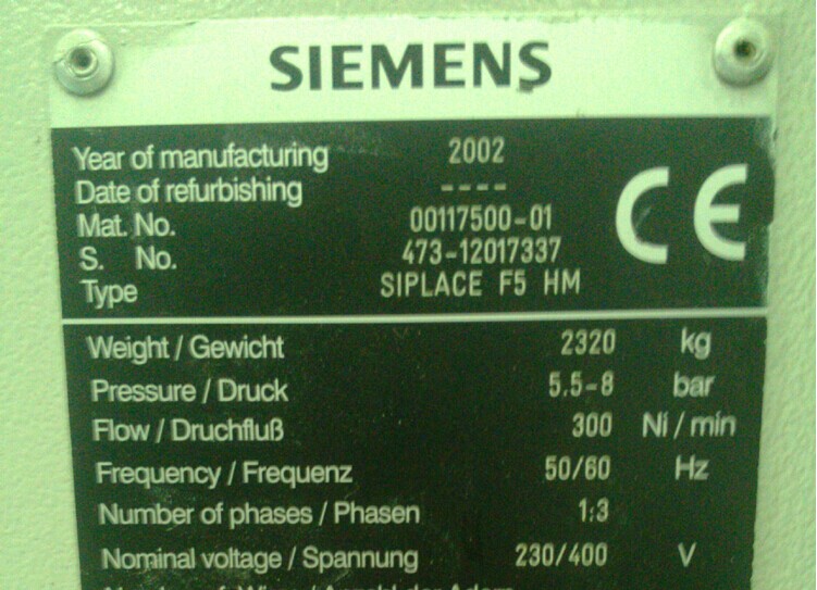 西門子 f5hm 二手貼片機-技術(shù)參數(shù)