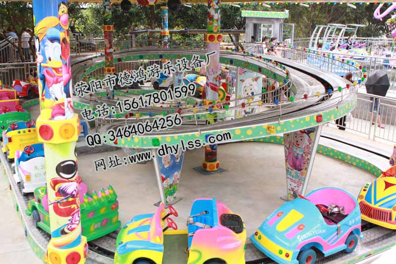 它是在立交式軌道上行駛的一種新型游樂設備,它是由造型精美、風格各異的跑車組成的浩蕩車隊,各自驅動同步行駛,沿軌道方向穿梭于具有現代化標志的立式軌道上,配有五彩繽紛的彩燈、音響及兒童卡通畫裝飾。讓孩子們體會翻山越嶺和飛躍時空的感覺,夠刺激又無恐慌感,使人身臨其境,賞心悅目,深受兒童喜愛。